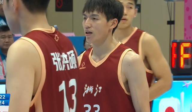 比赛开始,刘泽希上来就扔进3分,但随后两队哐哐打铁,打了快3分钟了,浙江队才凭借刘泽一2罚1中,拿到第一分。两队之后战成3比3平、5-5平、7-7平、9-9平。凭借程帅澎的3分和刘泽一的进球,首节战罢,浙江队14-11领先3分。