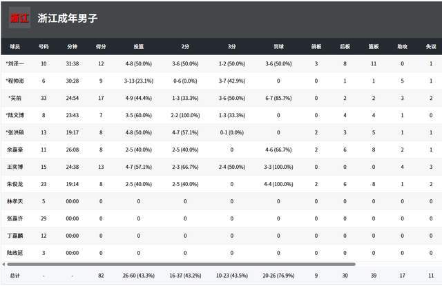 从数据来看,浙江队仅用了8人轮转,丁伟摆明了要拿下胜利的,8人都有得分入账,3人得分上双,刘泽一12分11篮板,吴前17分2篮板3助攻,王奕博13分4助攻。