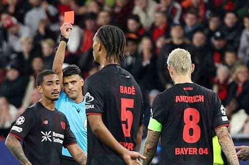 北京时间10月22日,欧冠联赛阶段第3轮,勒沃库森对阵巴黎圣日耳曼。在本场比赛的上半场,勒沃库森球员安德里希被罚下。
